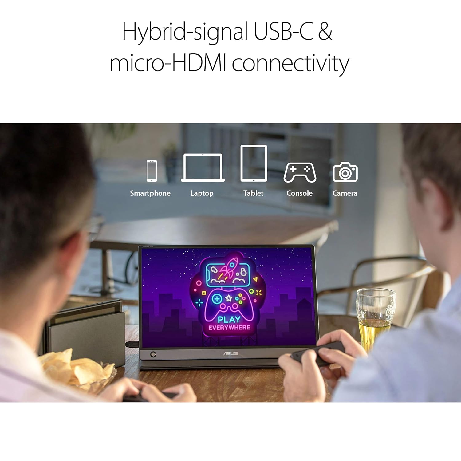 Featuring hybrid-signal USB-C™ and micro-HDMI connectivity, ZenScreen Touch MB16AMT lets you display content from a wide variety of devices, including laptops, smartphones, game consoles, cameras and tablets, providing a more expansive view for work or play. It features an innovative hybrid-signal solution with native support for USB Type-C connections and uses an installed driver to support USB Type-A* connectors for full compatibility. The reversible, any-way-up USB-C design enables quick, hassle-free connection to any device.