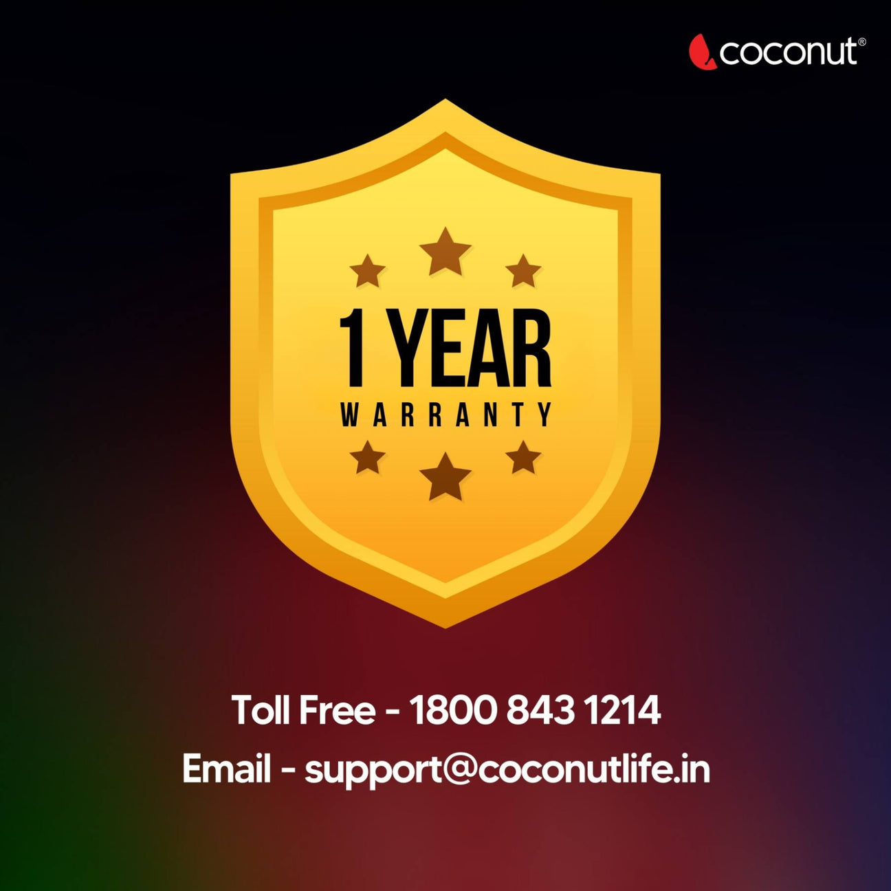 1 YEARS WARRANTY : Coconut provides a 1 Year Warranty .