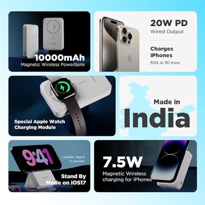 [Your All-in one Magnetic Wireless Charging Solution]:Say goodbye to the hassle of carrying multiple chargers for your devices.Click Duo allows you to charge your iPhone 15/14/13/12, Apple Watch, and latest Airpods also enables wireless charging and has 10000 mAh capacity hence you can chargeit easily on the go, this powerbank ensures that all your essentials stay charged up and ready to use.