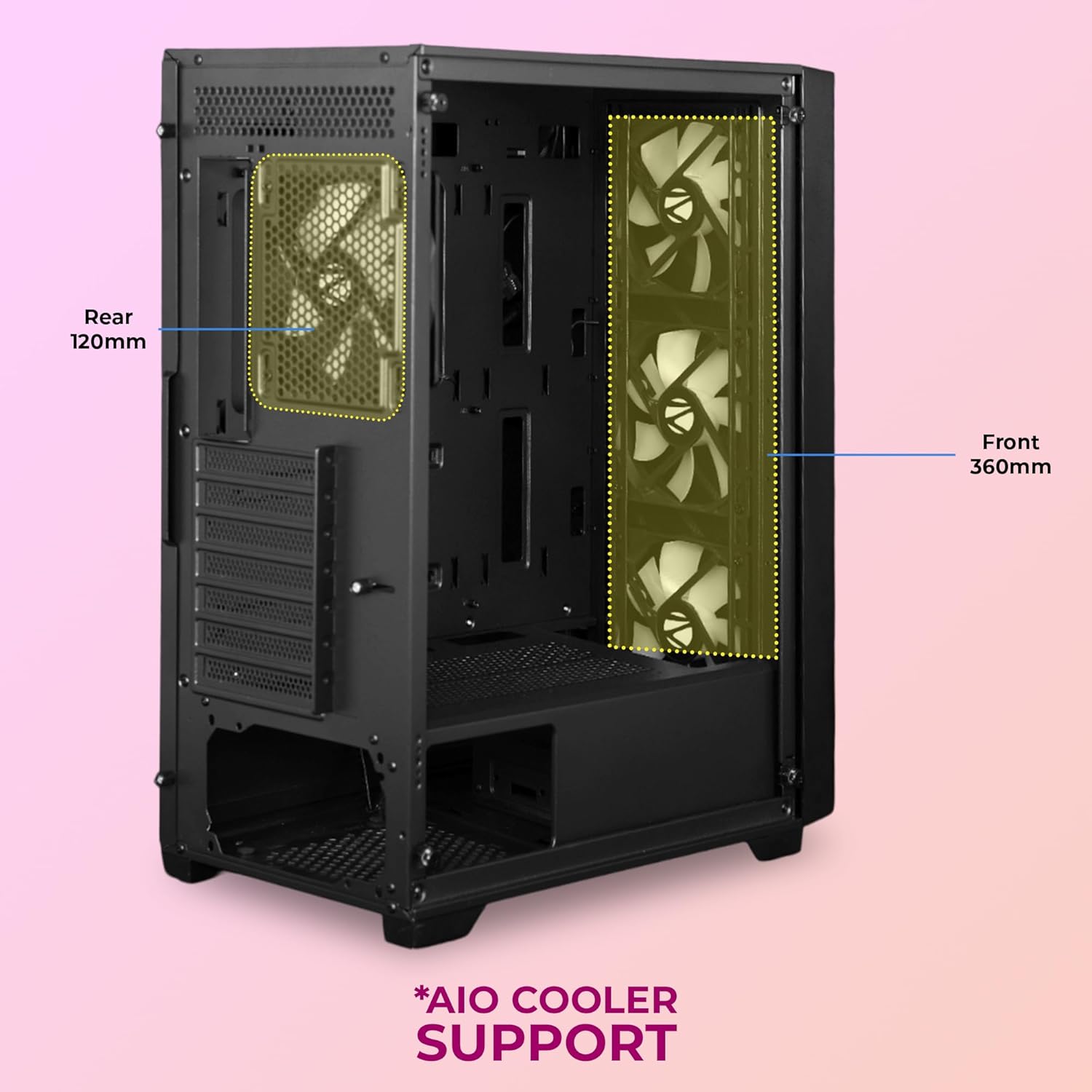 ZEBRONICS Hype Mid-Tower Premium Gaming Cabinet - ATX/M-ATX/M-ITX, 3 x 120 mm Front, 1x120 mm Rear Fan, ARGB Inner Glow, LED Control, Tempered Glass Side Panel, USB 3.0, Magnetic Dust Filter (Black)